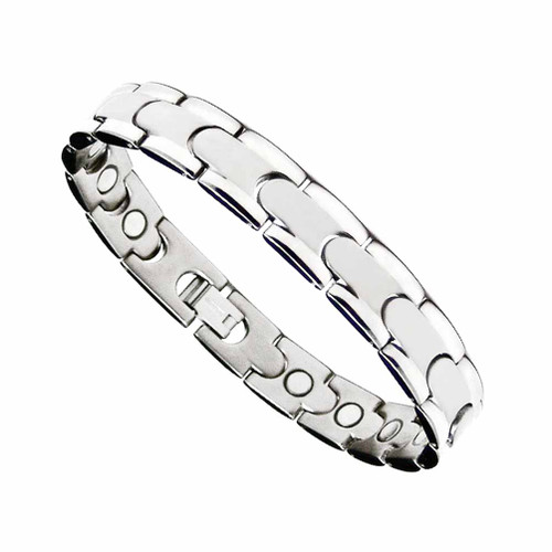 Professional athletes look to magnetic therapy to increase energy, relieve pain and improve circulation. Tarnish-resistant with distinctive silver link design and precision-crafted fold over clasp with secure latch. It also comes with a very nice velvet hard cover gift box.