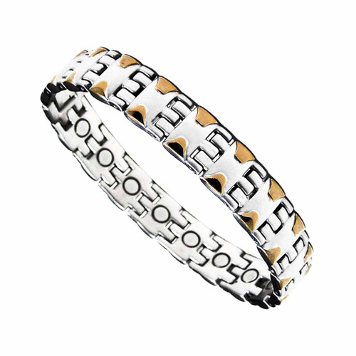 Professional athletes look to magnetic therapy to increase energy, relieve pain and improve circulation. Tarnish-resistant with distinctive gold & silver link design and precision-crafted fold over clasp with secure latch. It also comes with a very nice velvet hard cover gift box.